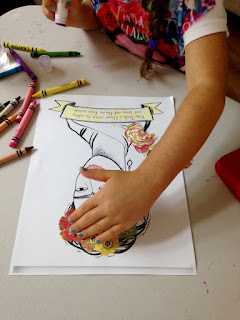 We combined the textured painting and the Frida flower crown activity to create this cool Frida piece above. Lily insisted that I draw another ear and earring on Frida because they were missing. I can't wait to frame it and hang it in her room.